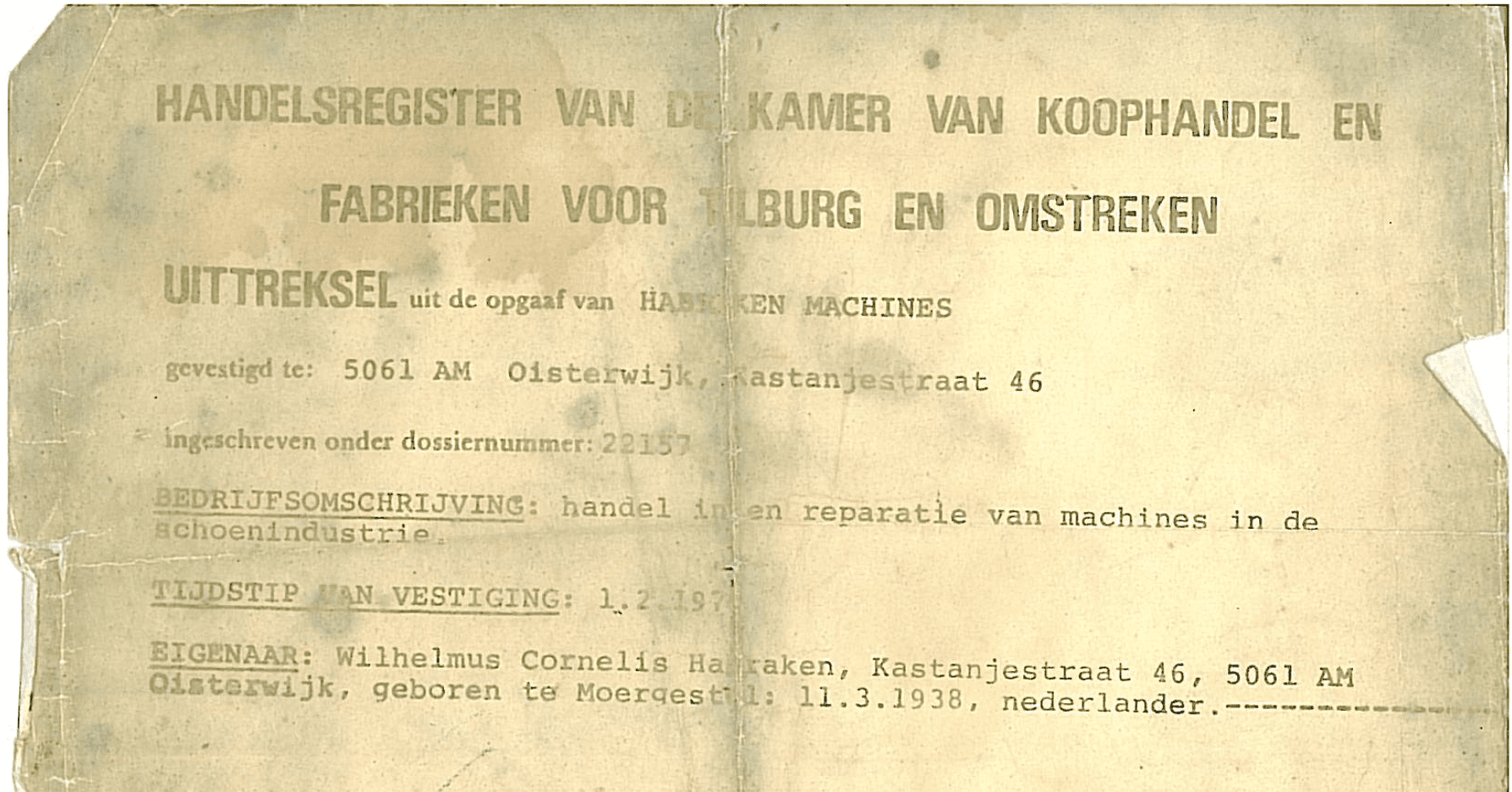 In februari 1979 begon Wim Habraken met het huidige bedrijf Habraken. Voorheen was Wim werkzaam als naaimachine-monteur bij fabrieken in de schoenenindustrie.